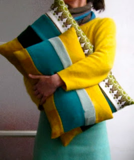 Er ligt nog een hele stapel oude truien en gordijnen klaar om ook een tweede leven als kussen te beginnen, maar daar wou ik niet op wachten om deze exemplaren al te tonen. Tenslotte komt kerst nu wel heel dichtbij en wordt het hoog tijd dat we de kerstballen uit de kast halen. (Meneer Appelzee, waar blijft die boom?!)
